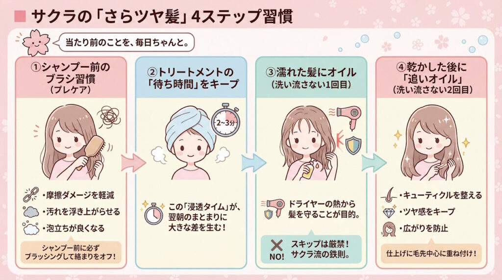 ■ サクラ流・サラツヤ髪を作る4ステップルーティン