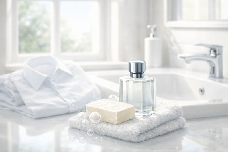 香りのイメージ: 「高級ホテルの真っ白なシーツ」や「お風呂上がりの石けん」の香り。ムスクと花の香りがやさしく混ざり合い、誰が嗅いでも「あ、清潔だな」と感じる安心の設計です。
