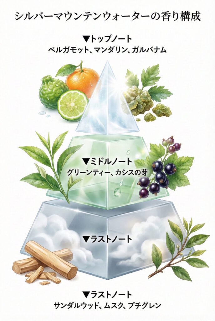 シルバーマウンテンウォーターを纏う前に知っておきたい、基本的な特徴のまとめです。