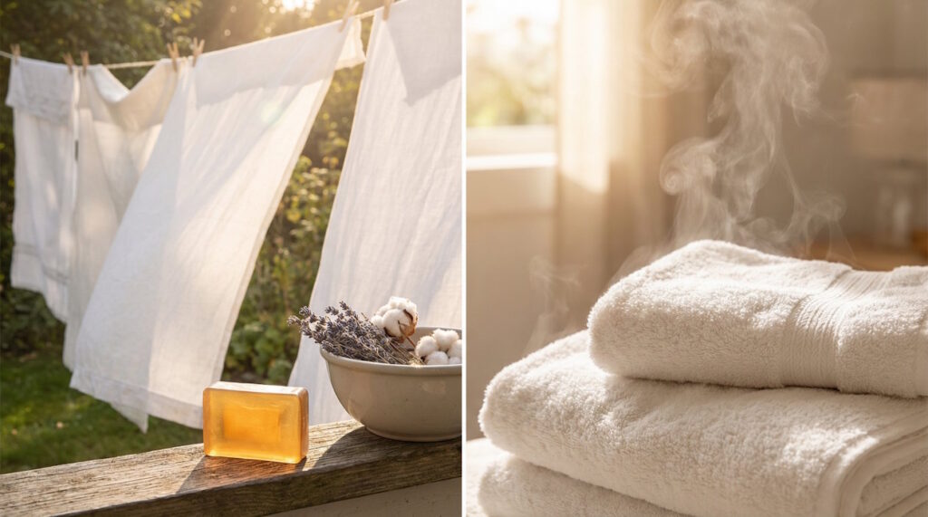 “日曜日の朝、洗い立てのリネンに包まれる心地よさ”。