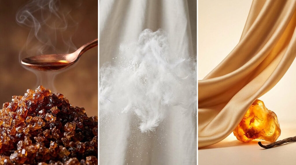 | 高貴なベンゾイン | ラオス産ベンゾイン | 「温かな気品」 バニラのような深みを与え、香りに奥行きと持続力をもたらします。 |