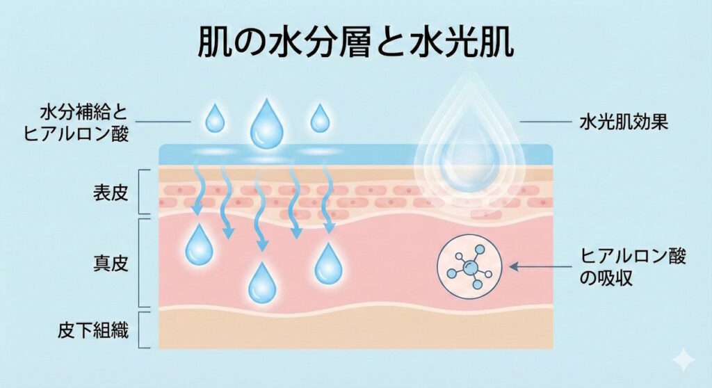 「水光肌」とは、内側からうるおって自然なツヤが出ている、K-POPアイドルのような透明感のある肌のことです。